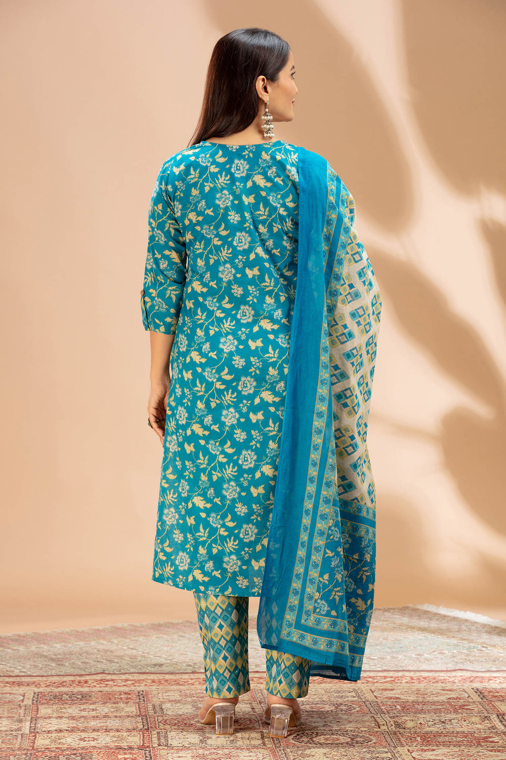 Blue Printed Cotton Straight Kurta Set